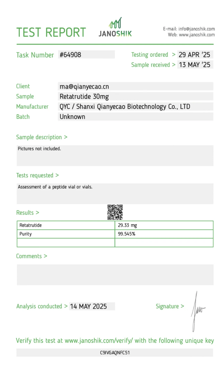 Lot-specific Certificate of Analysis (COA) – HPLC/LC-MS verified